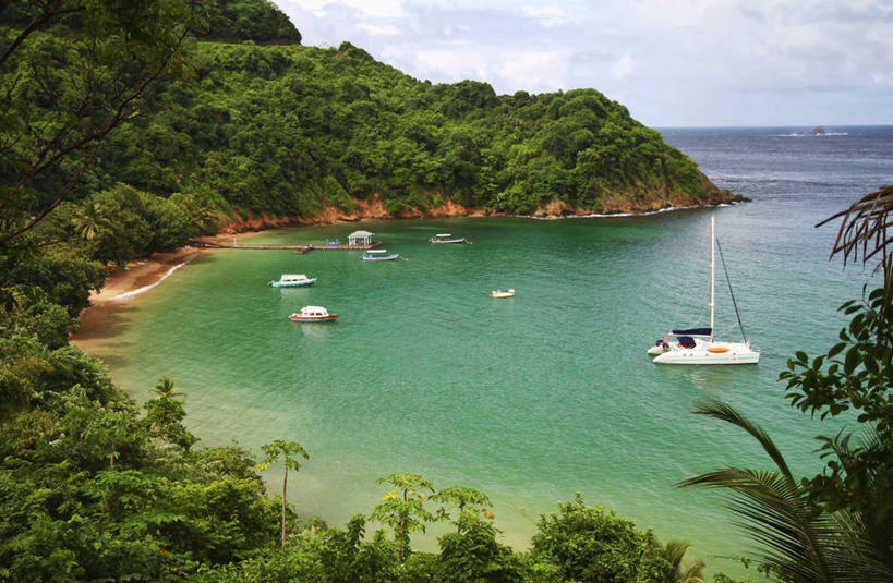 无人,横图,室外,白天,海洋,船,特立尼达和多巴哥,停靠,岛,云,树,自然,运输,摄影,宁静,停泊,多巴哥岛,彩图